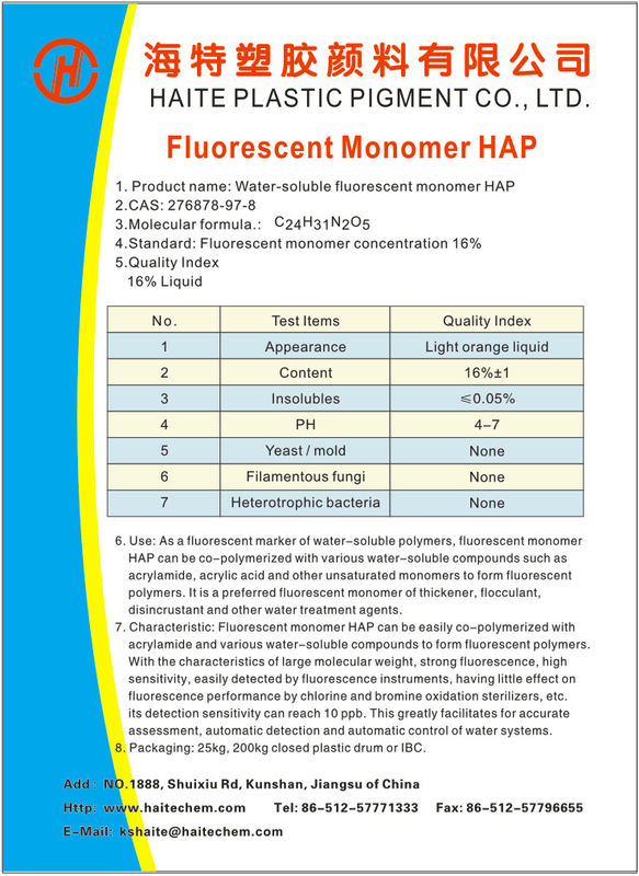 HAPNQは16%の集中および84%水が付いている茶色の液体である。産業給水系統で使用されたとき何付けられたポリマーが産業給水系統にあるか定めるのに、このの蛍光信号が付けられたポリマー使用することができる。
